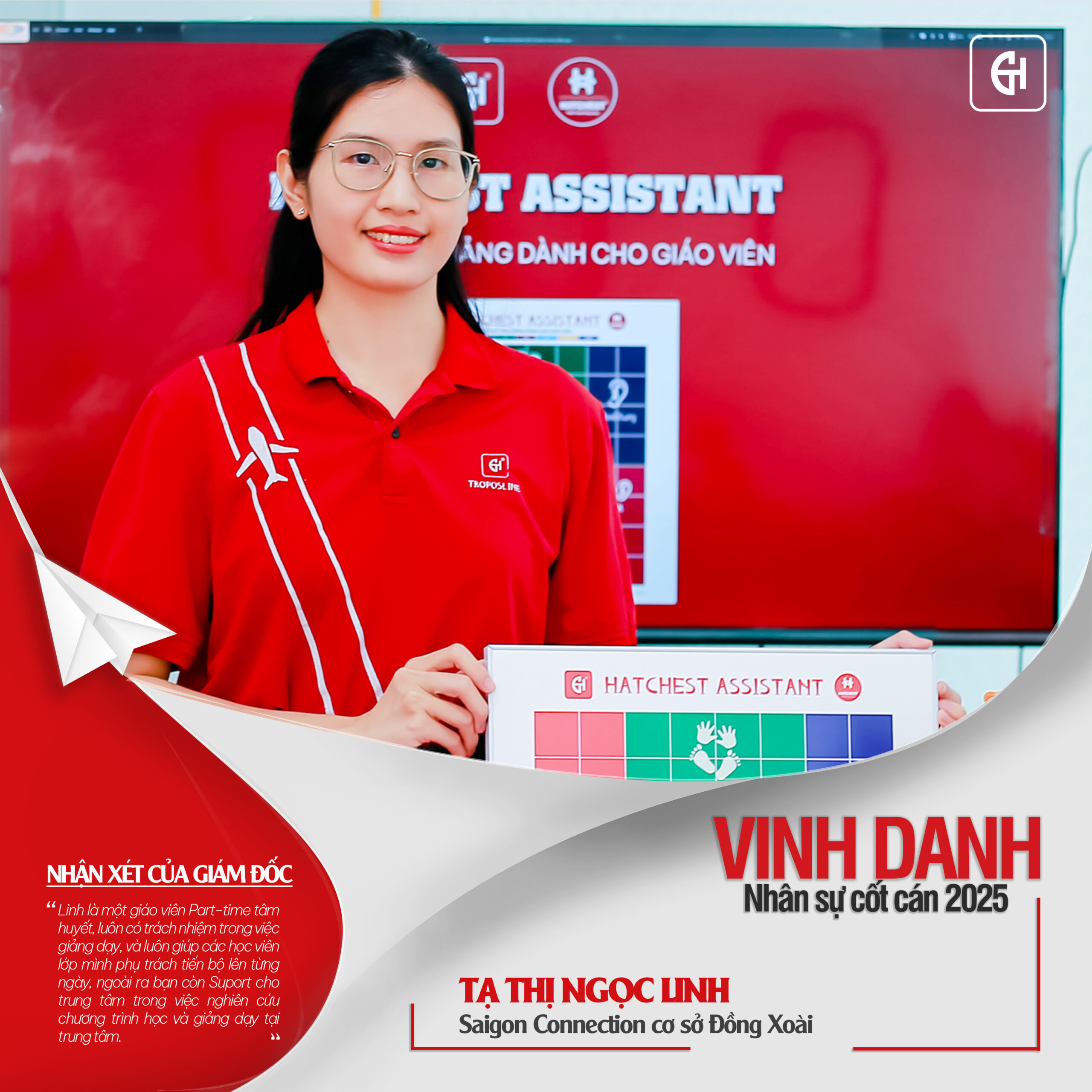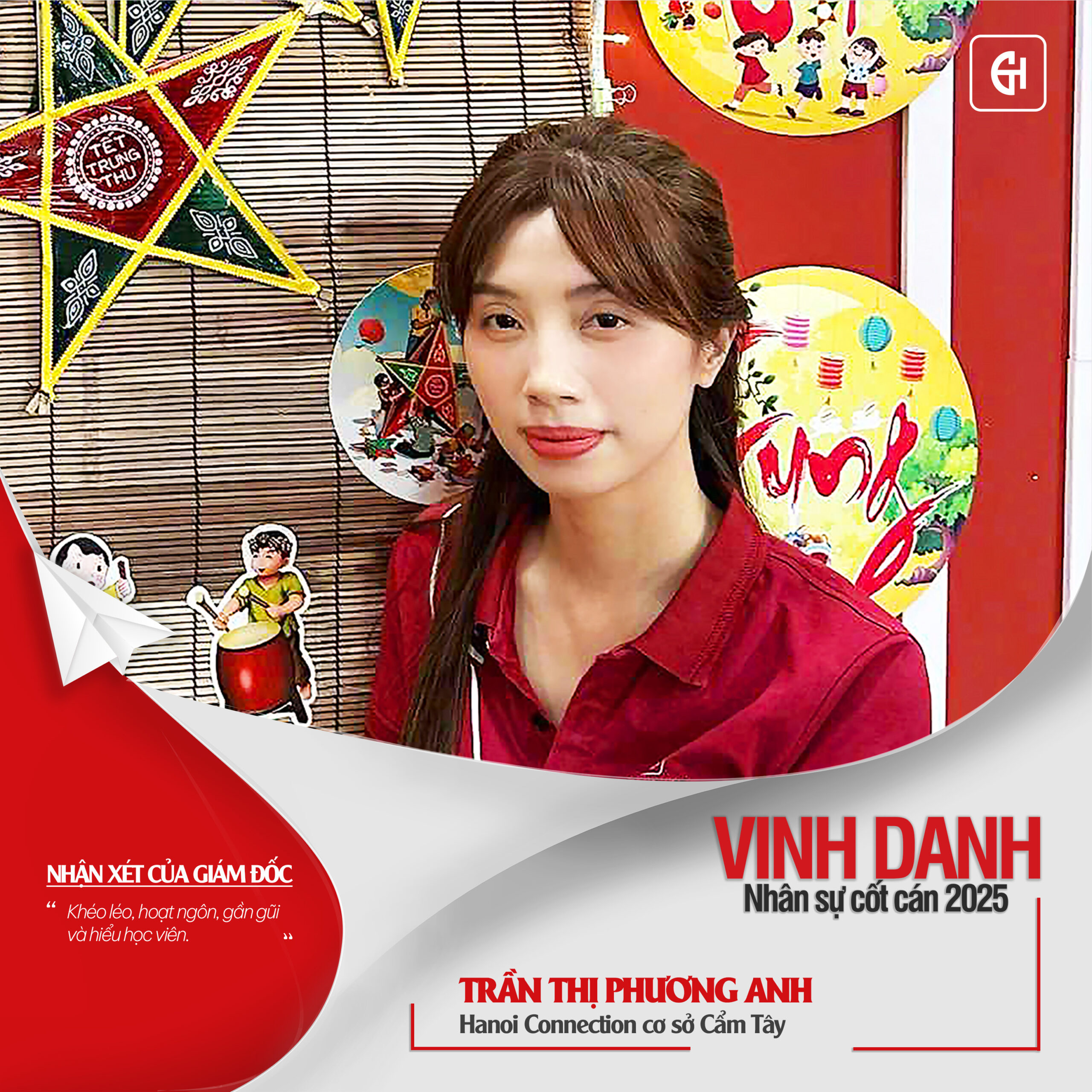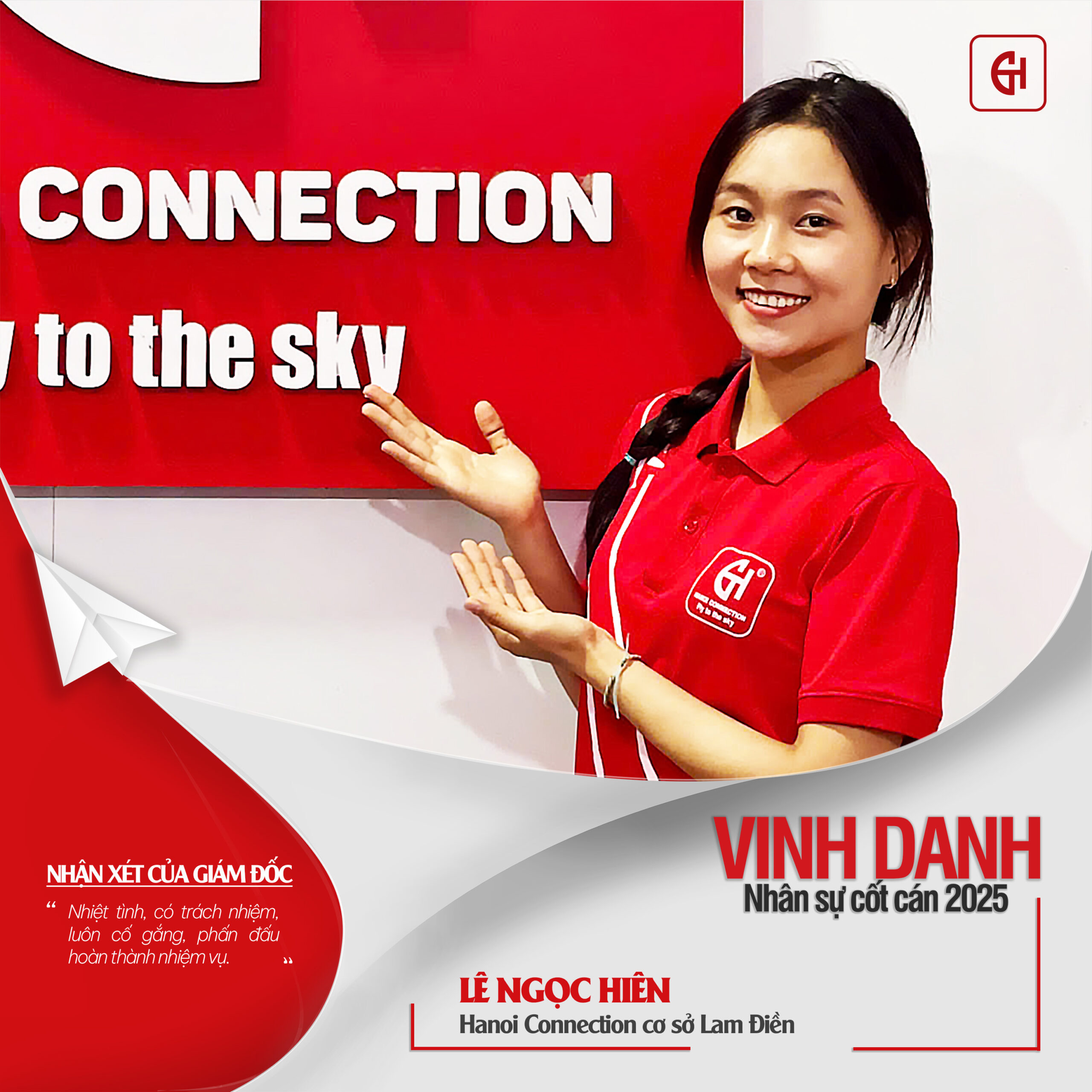 Nếu việc làm tốt diễn ra một lần, người ta gọi là khoảnh khắc, còn việc làm tốt được diễn ra nhiều lần từ ngày này qua ngày khác thì người ta gọi là văn hóa. Tiếp nối truyền thống vinh danh nhân sự cốt cán 2024. Mùa vinh danh năm 2025 này chúng tôi xin gửi những lời cảm ơn tới những nhân sự cốt cán tại các cơ sở Hanoi Connection – Saigon Connection. Những người đã cố gắng làm việc và cống hiến mỗi ngày. Những đóng góp đó không còn dừng ở khoảnh khắc mà nó đã chuyển thành văn hóa. Những đóng góp cần mẫn và thầm lặng đó đã giúp cho các cơ sở Hanoi Connection, Saigon Connection ngày càng chiếm được niềm tin từ phụ huynh, học viên và những người tin yêu.